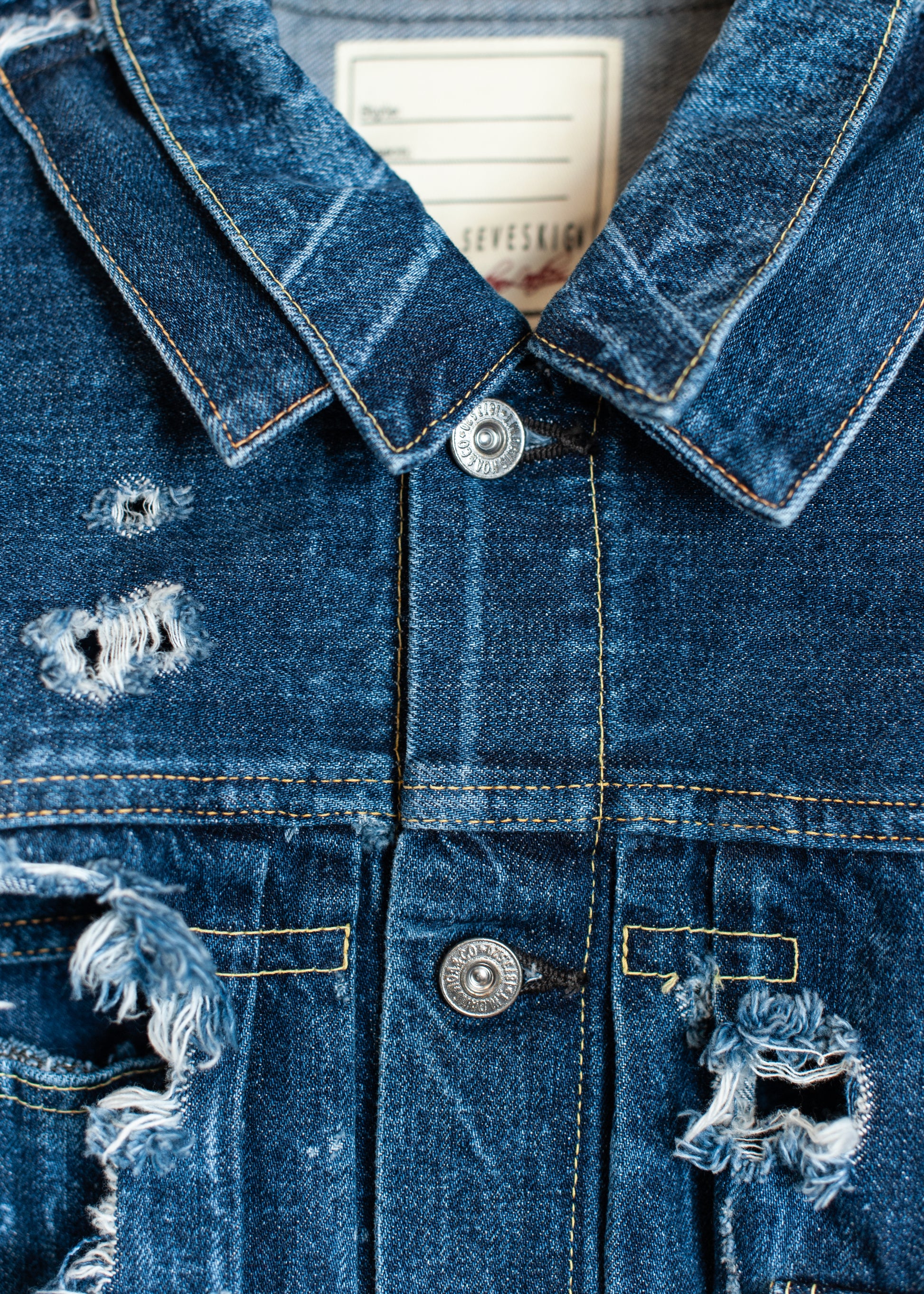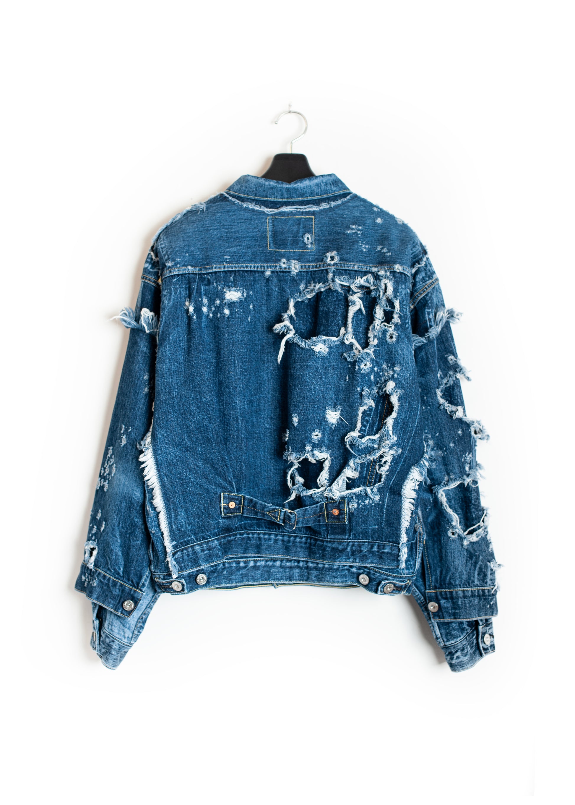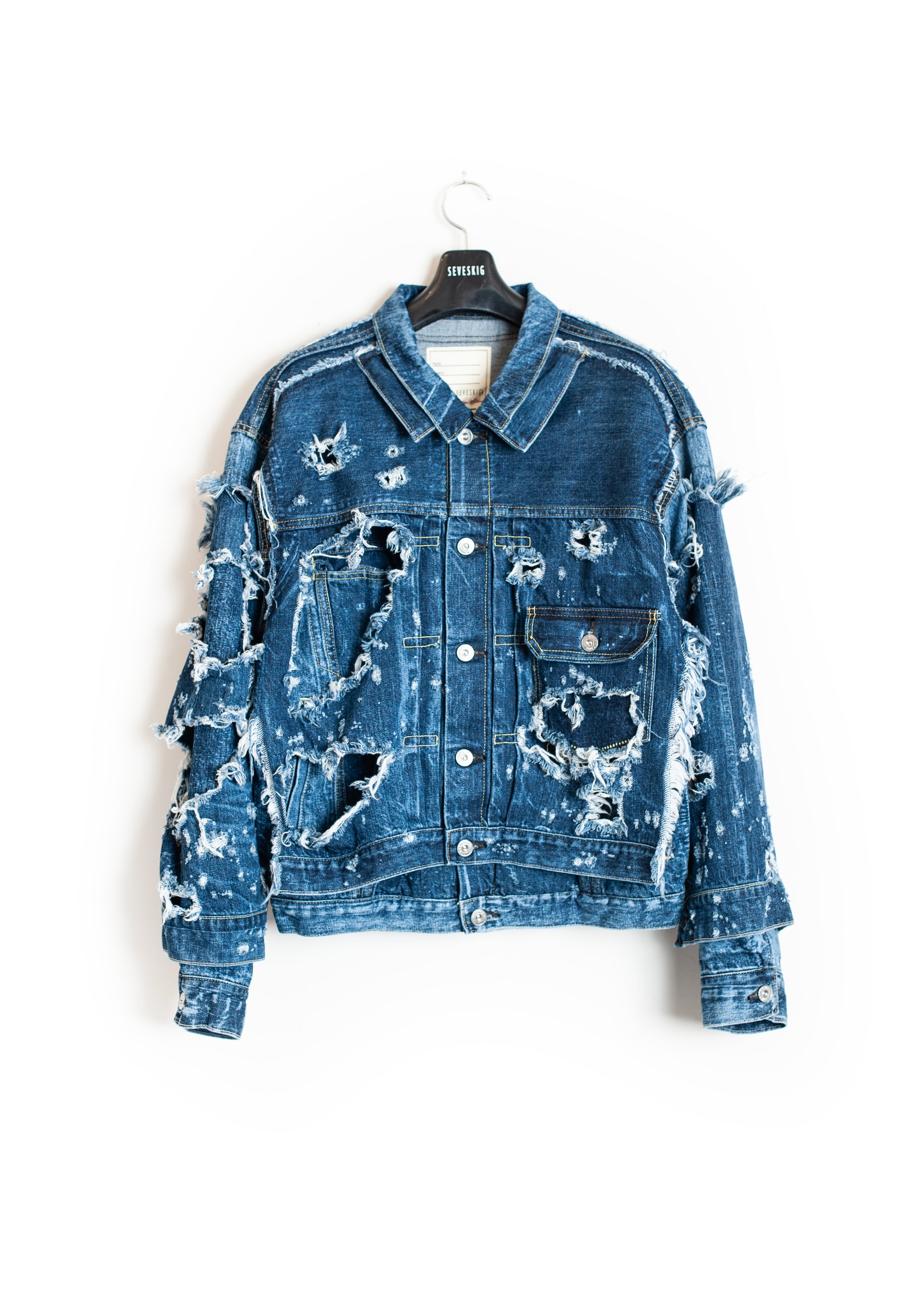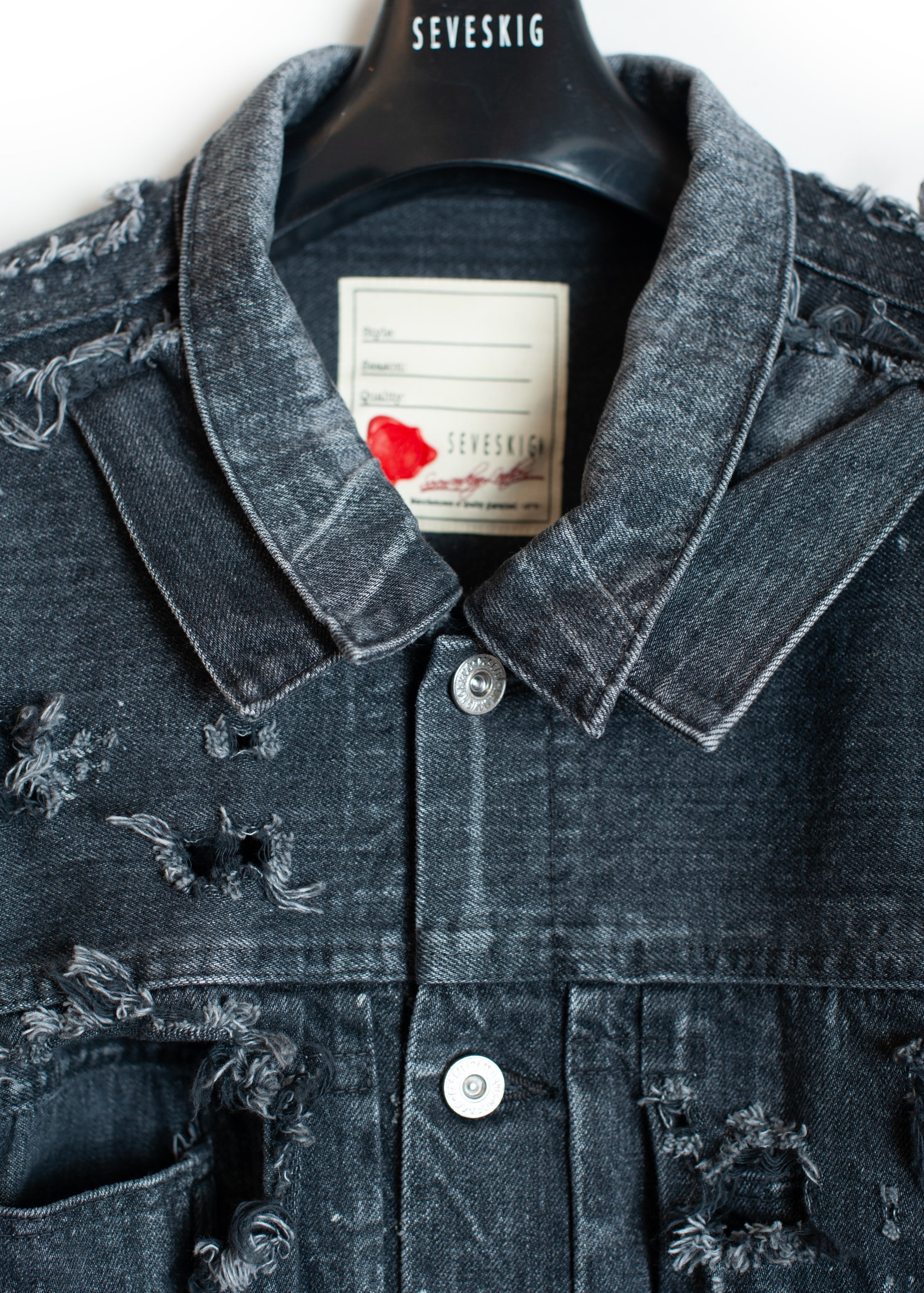A typical SEVESKIG piece that combines and reconstructs the 1st and 3rd type denim jackets.