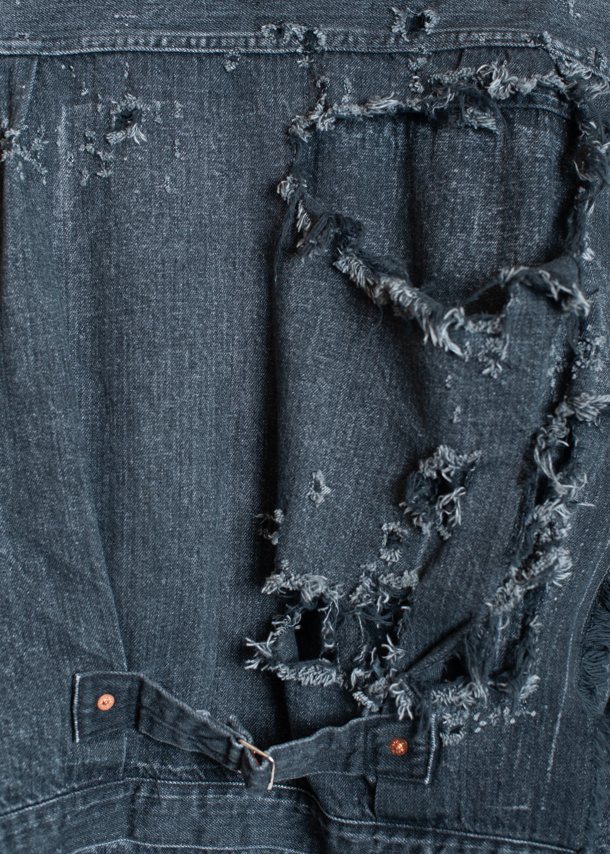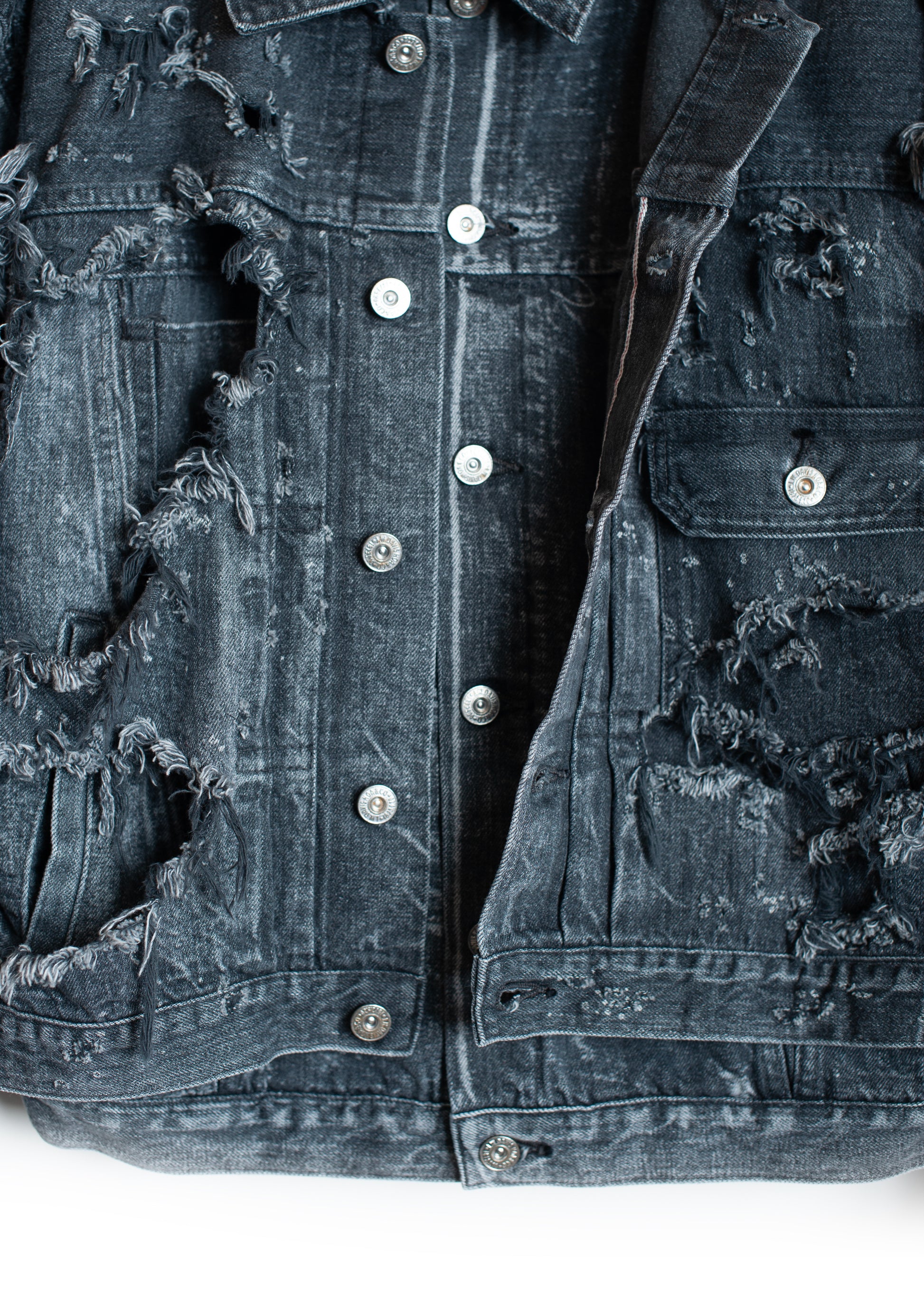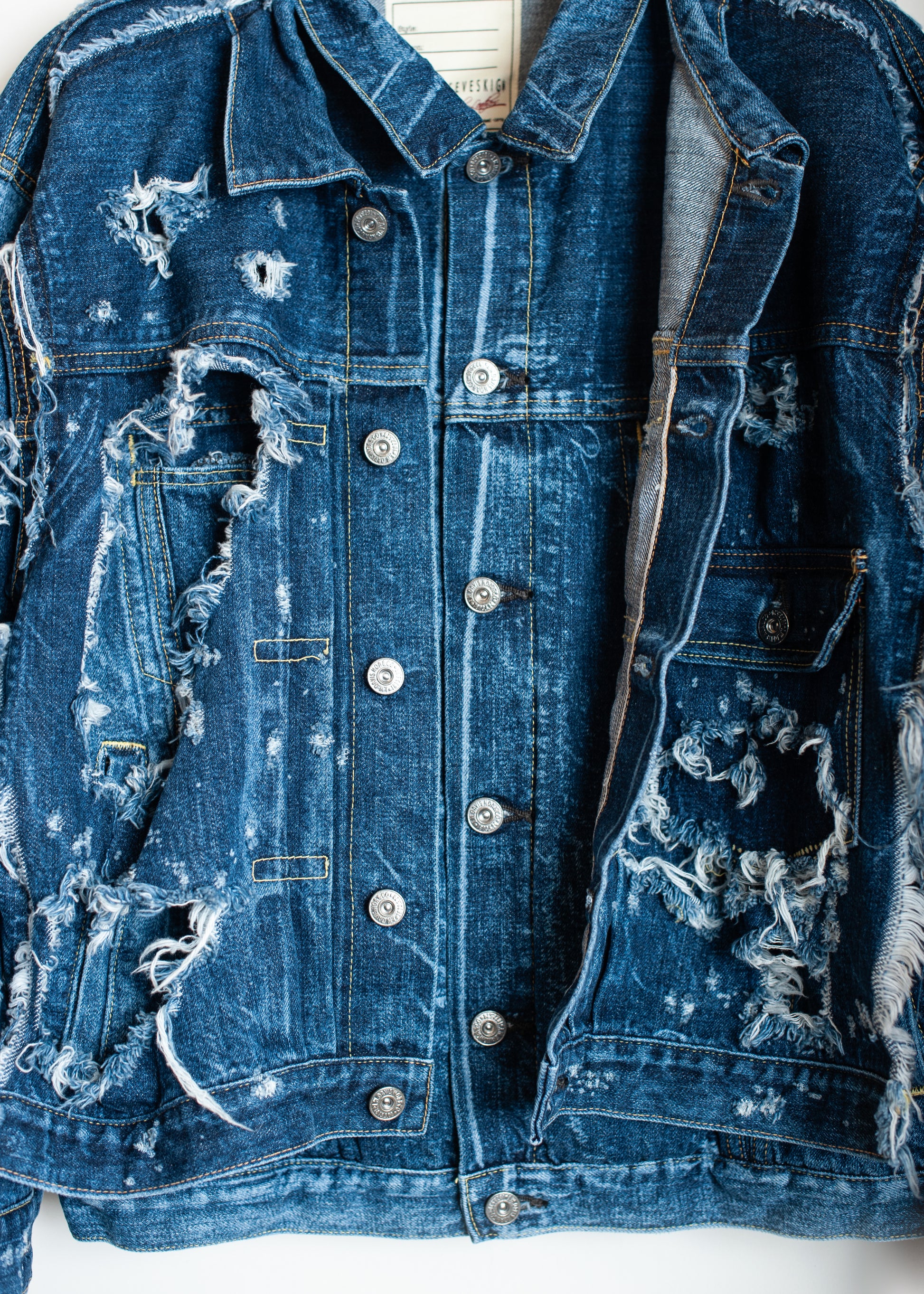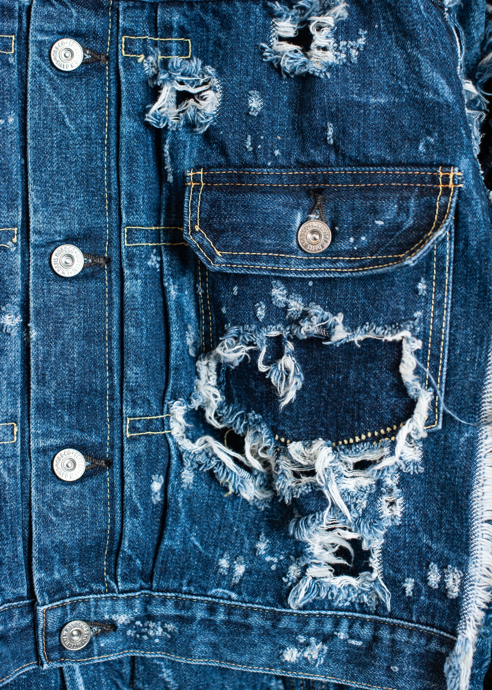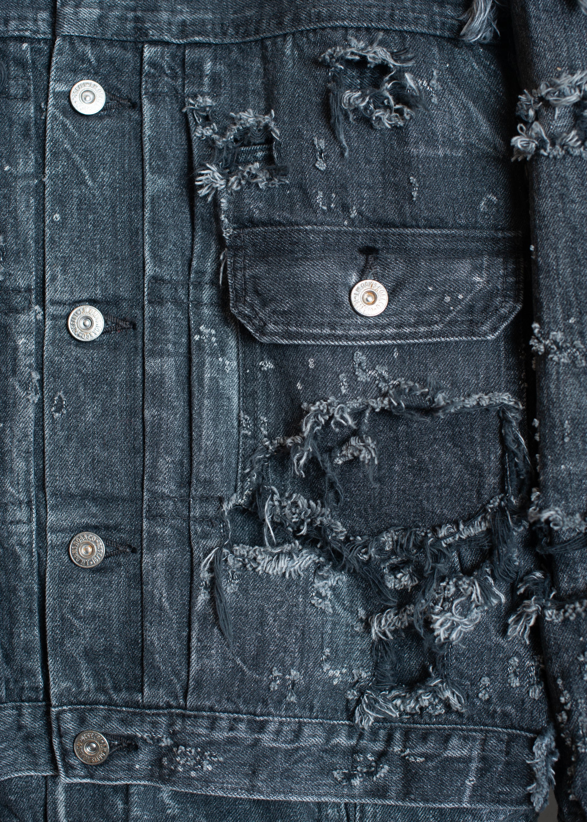 A typical SEVESKIG piece that combines and reconstructs the 1st and 3rd type denim jackets.