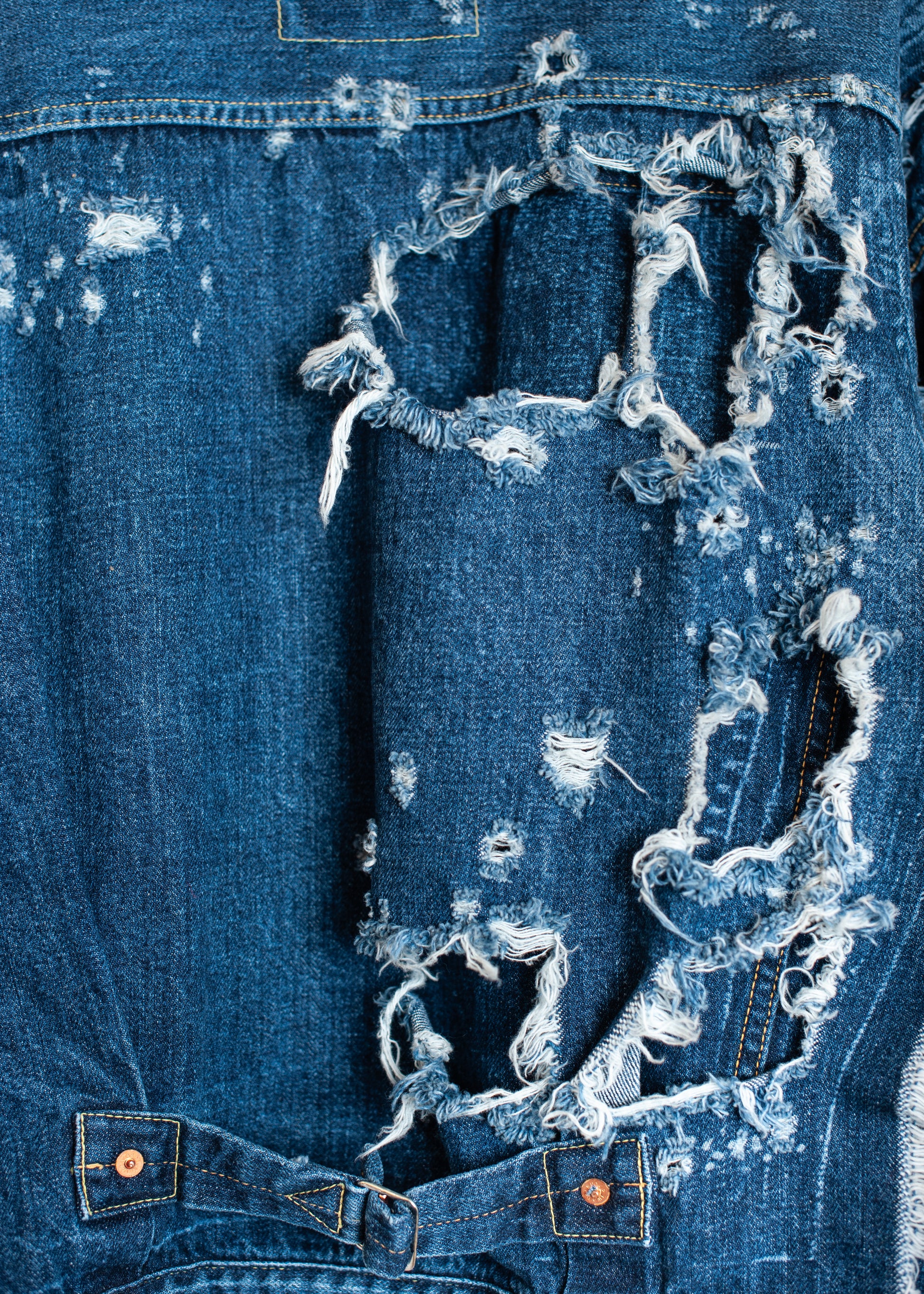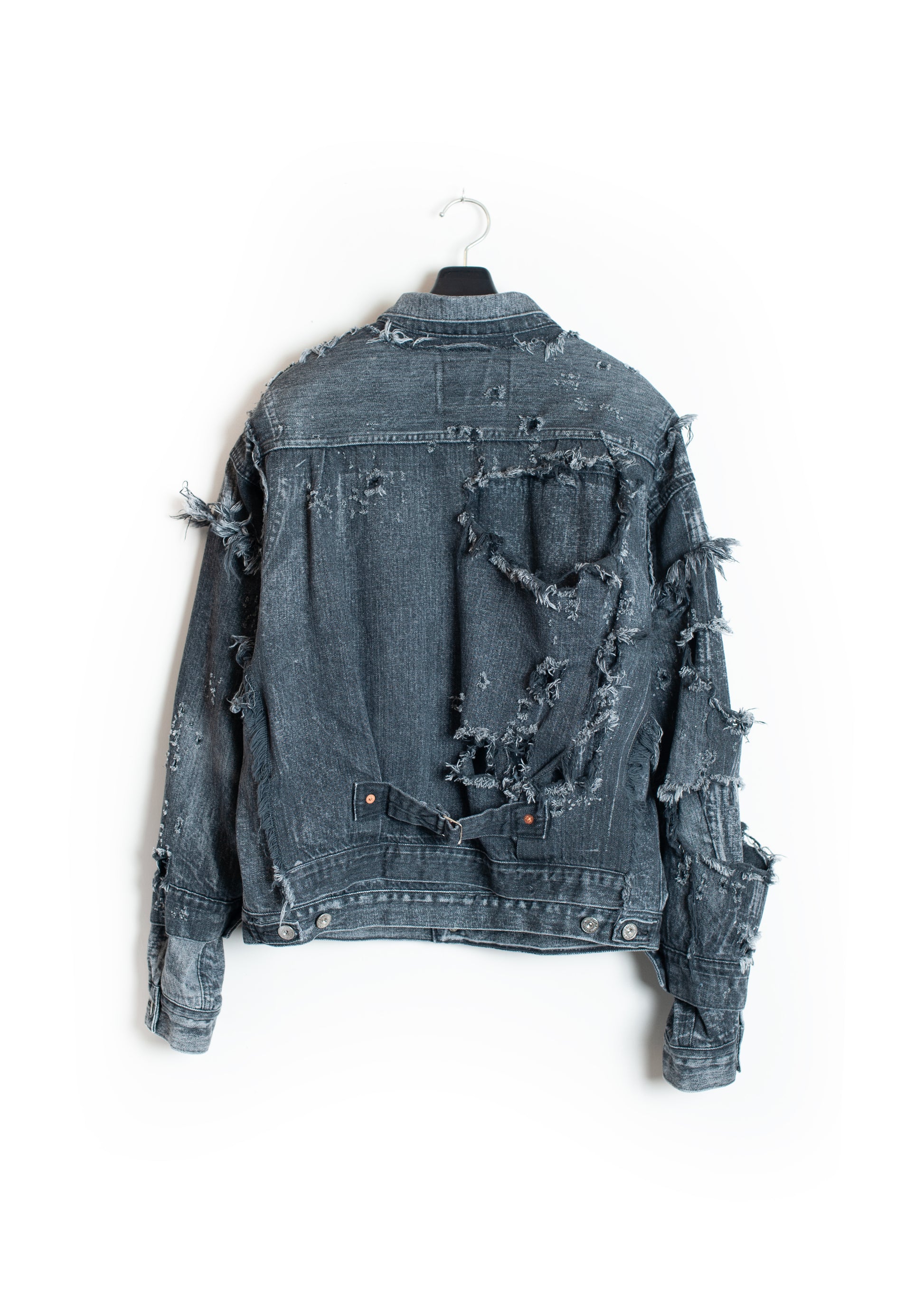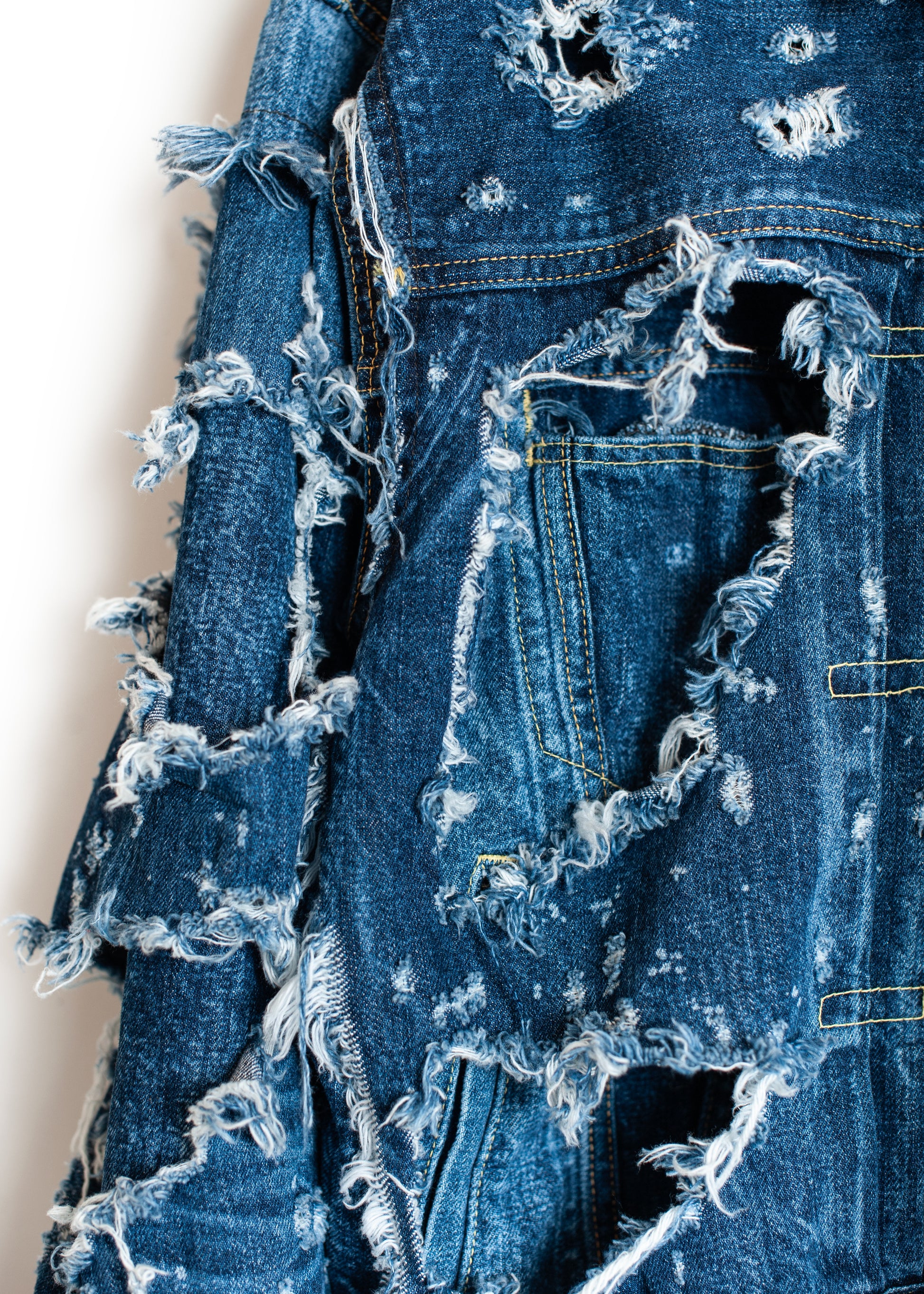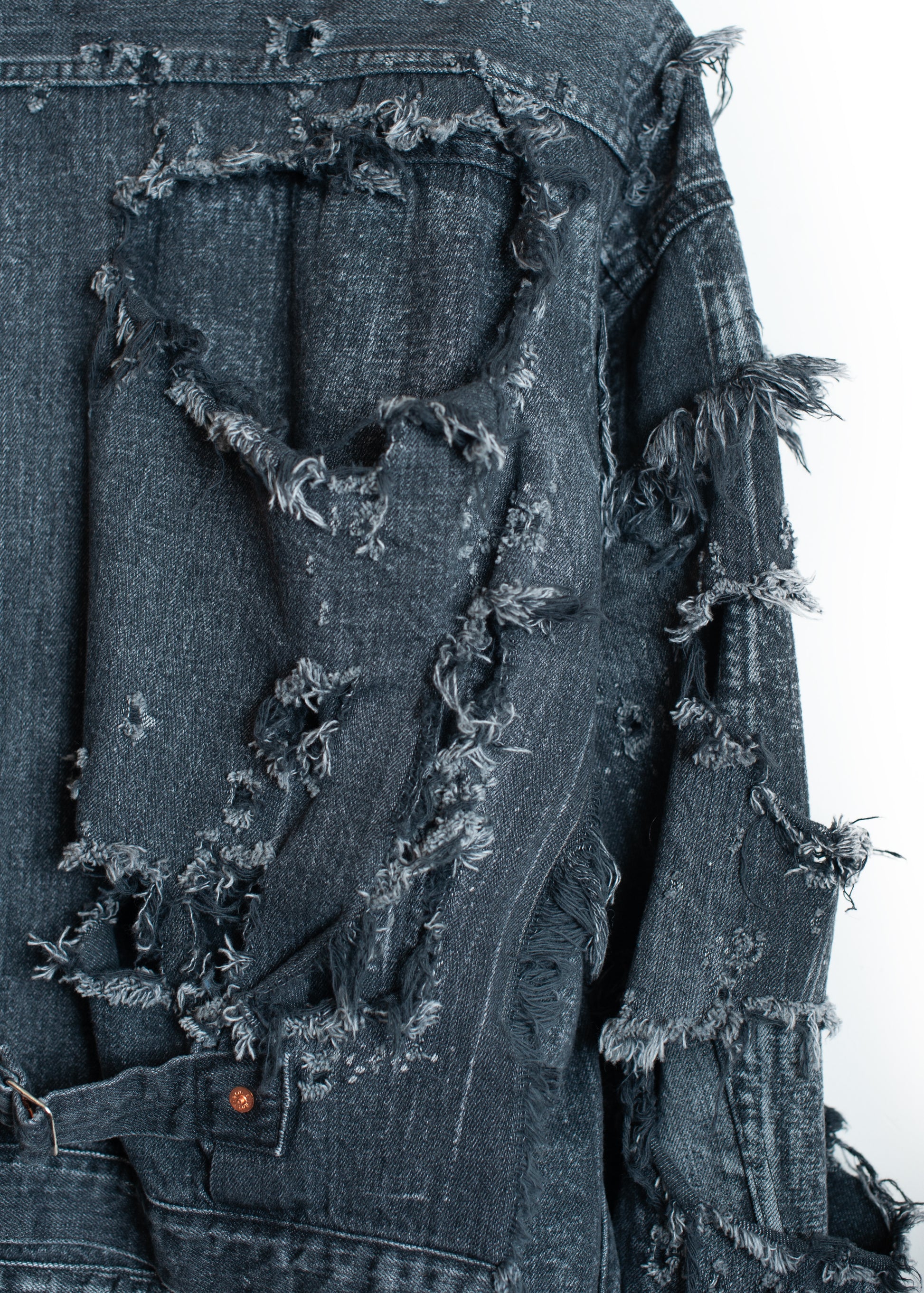 A typical SEVESKIG piece that combines and reconstructs the 1st and 3rd type denim jackets.