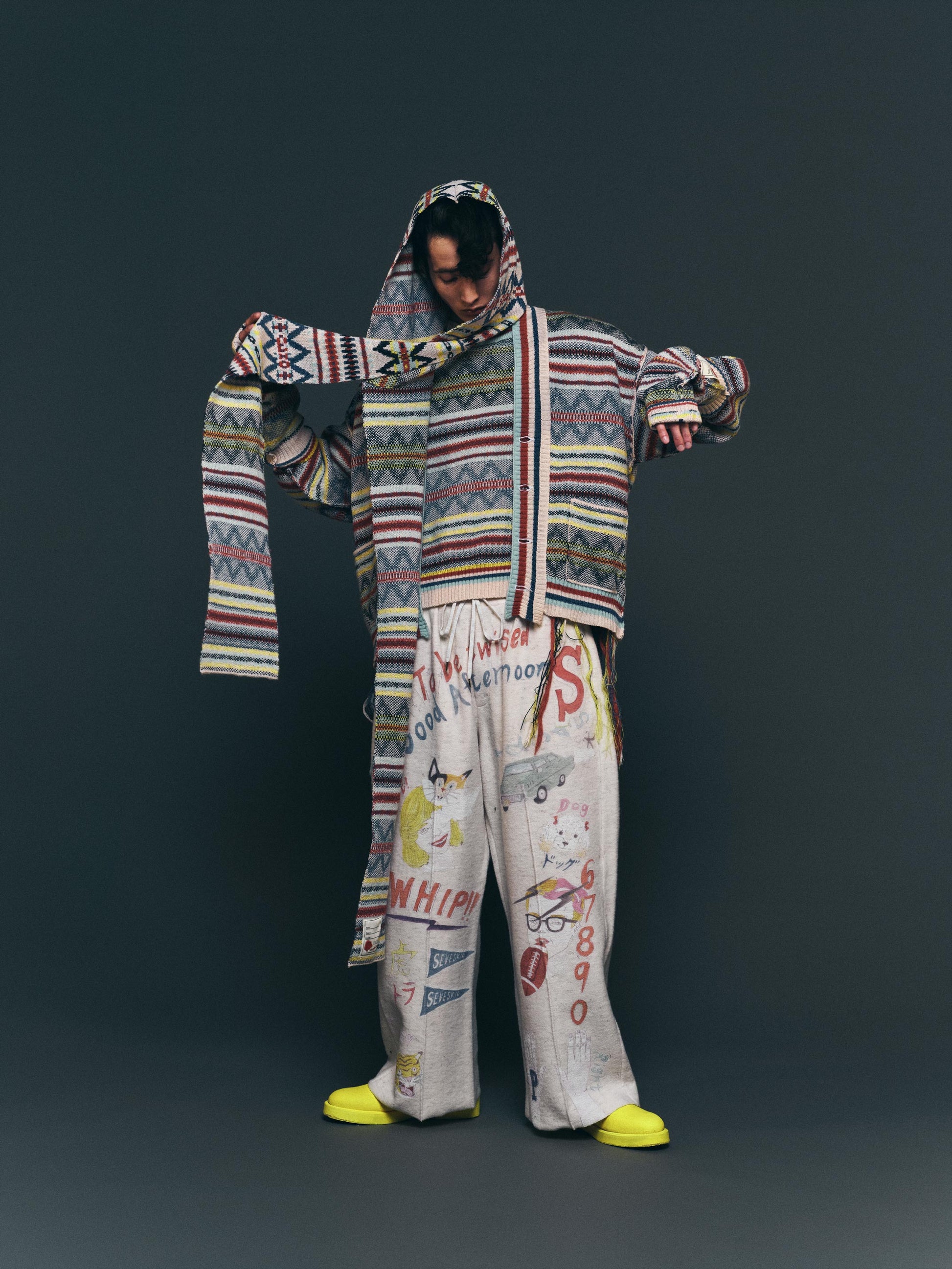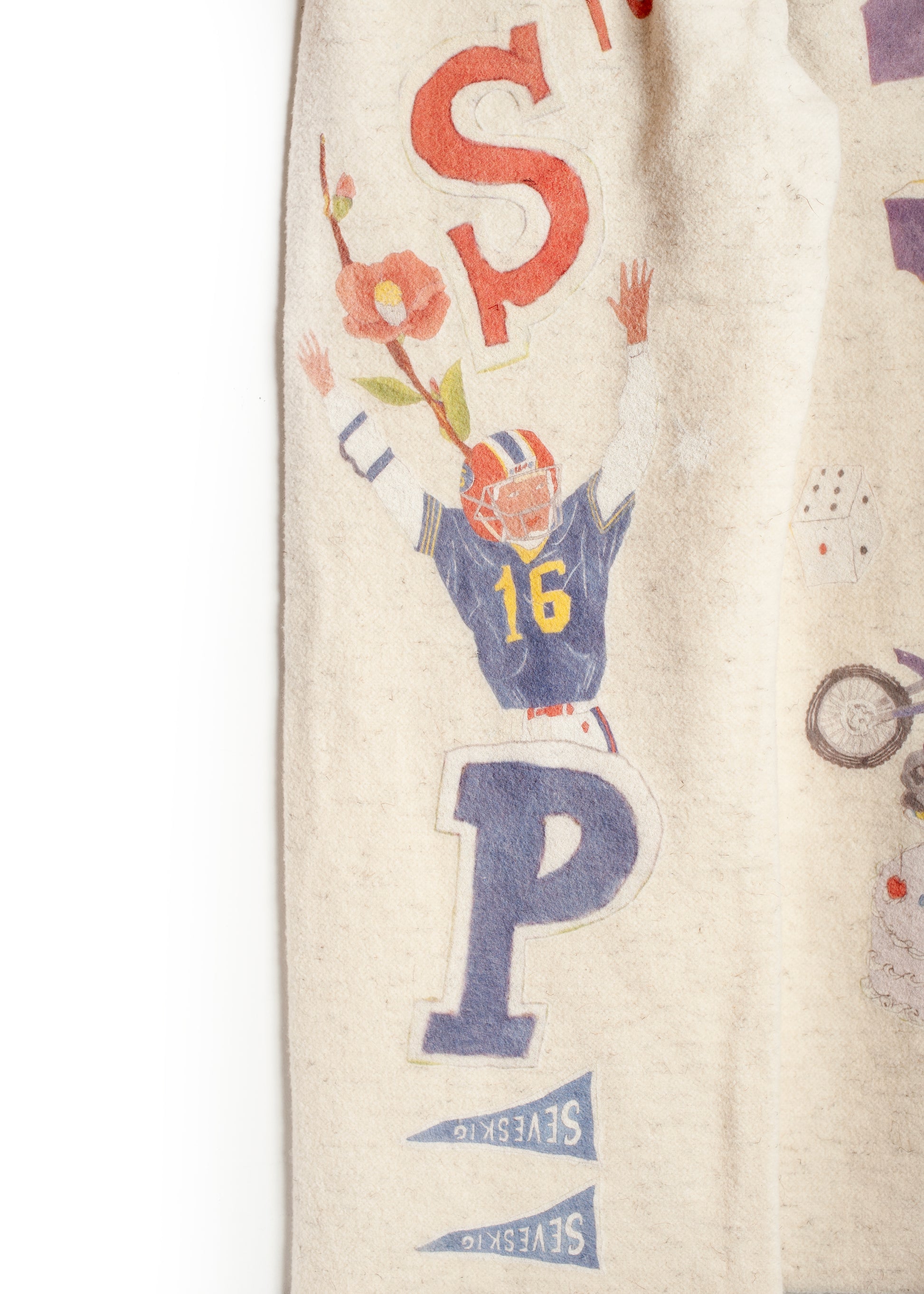 アーティスト RIDAWO(リダヲ) とのコラボレーションによって生まれた、SEVESKIGのスウェットパンツ。
