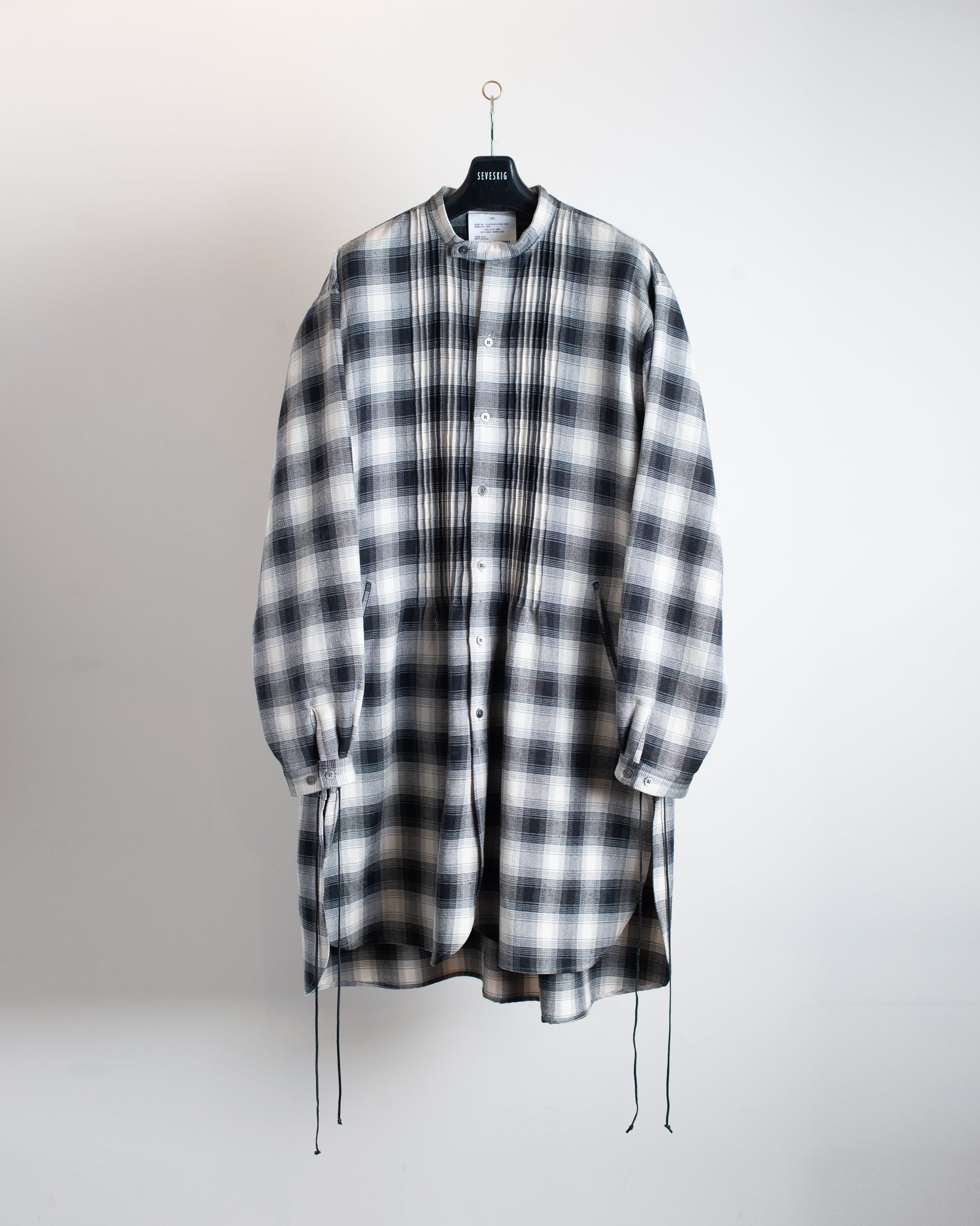 The 3mm pin tucks on the front, the lacing at the sides, and the band collar are details that evoke Native American inspiration.