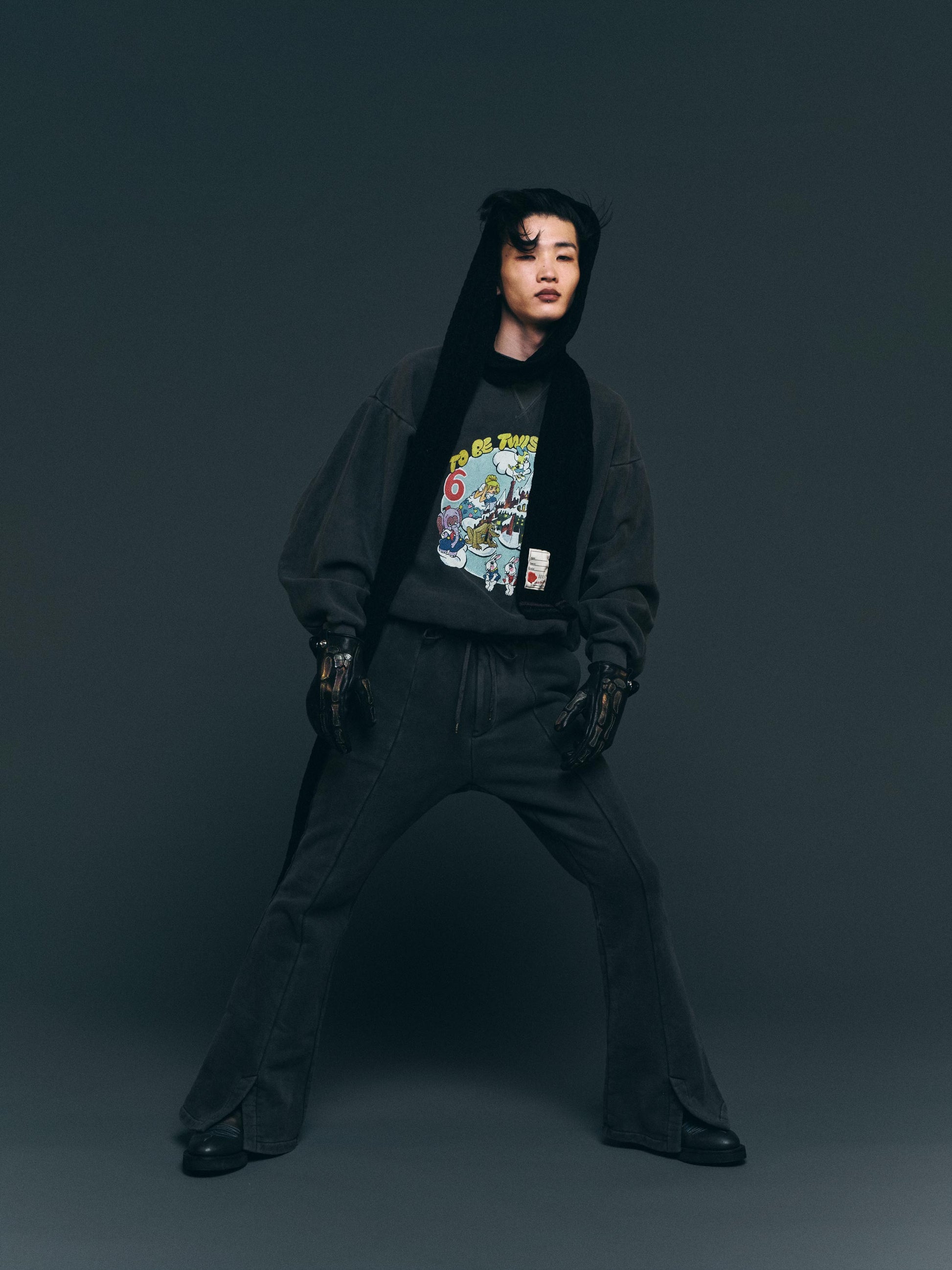今季のテーマ「TO BE TWISTED」を象徴する、ファンタジックでユーモラスなグラフィックスウェット。