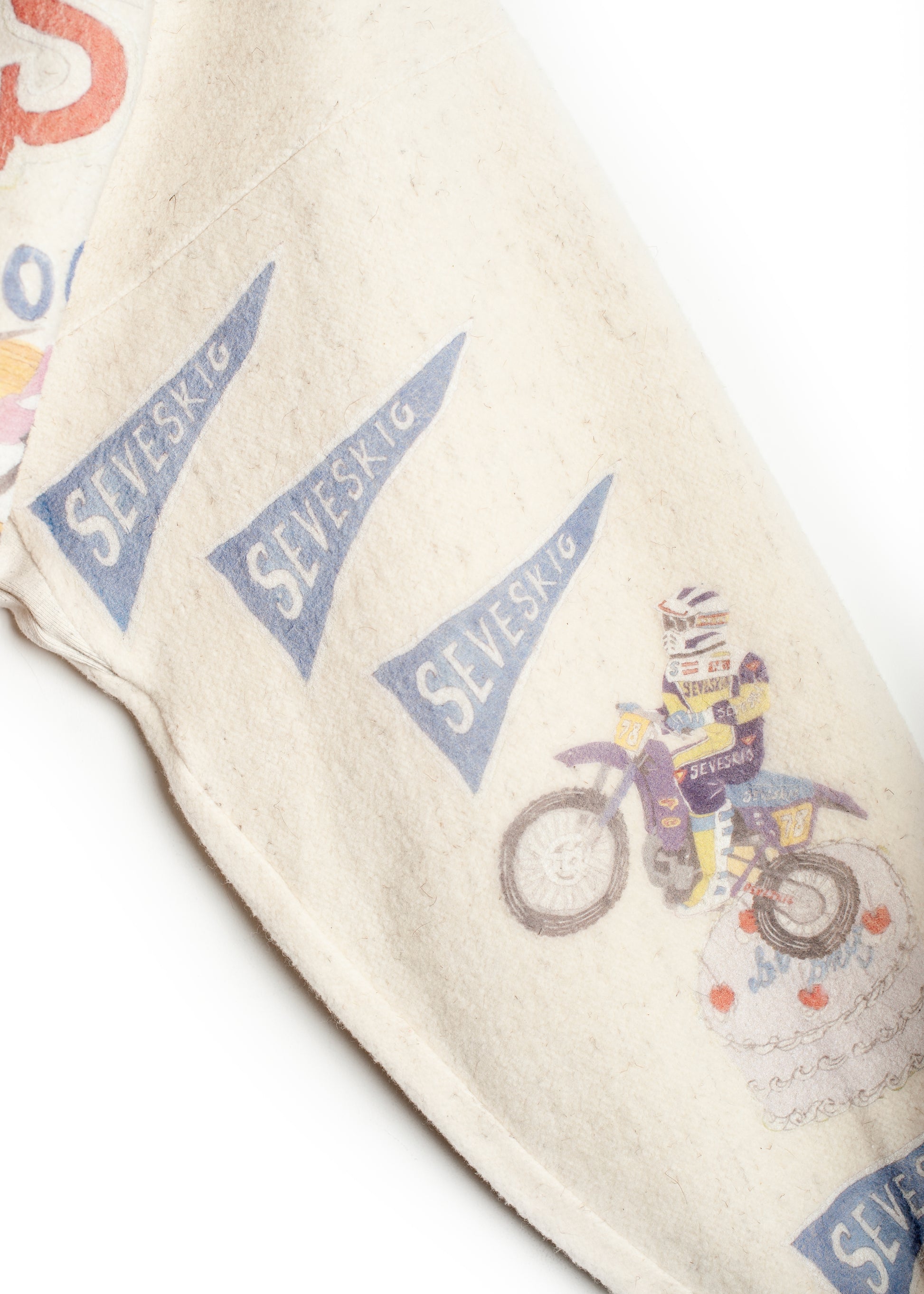 独創的なアートワークで注目を集めるアーティストRIDAWO(リダヲ)とのコラボレーションによって生まれた、SEVESKIGならではのスペシャルスウェット。