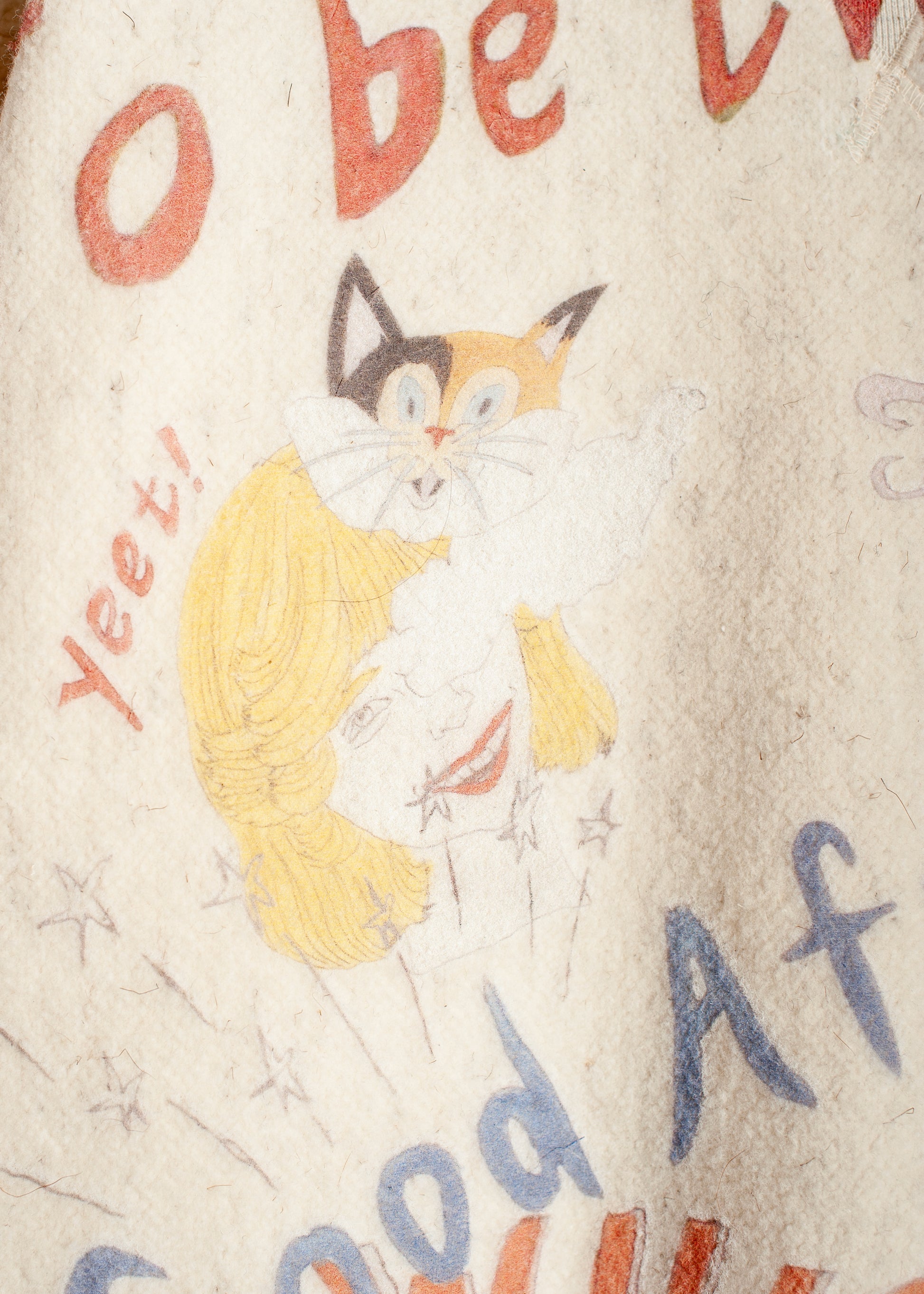 全面に施されたドローイング風グラフィックは、「TO BE TWISTED」のメッセージを軸に、動物や数字、タイポグラフィなどが自由奔放に配置されたユニークな世界観を表現。