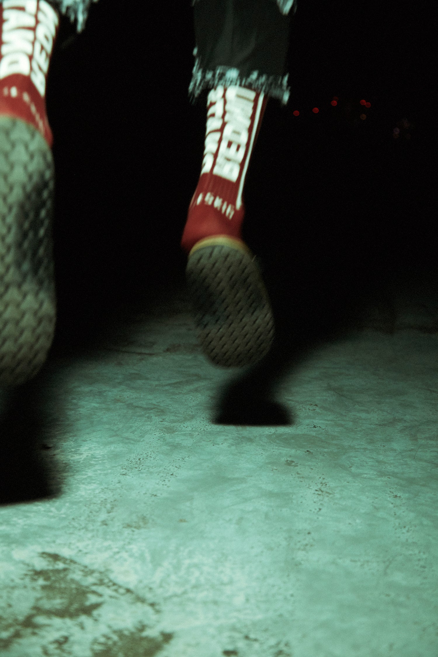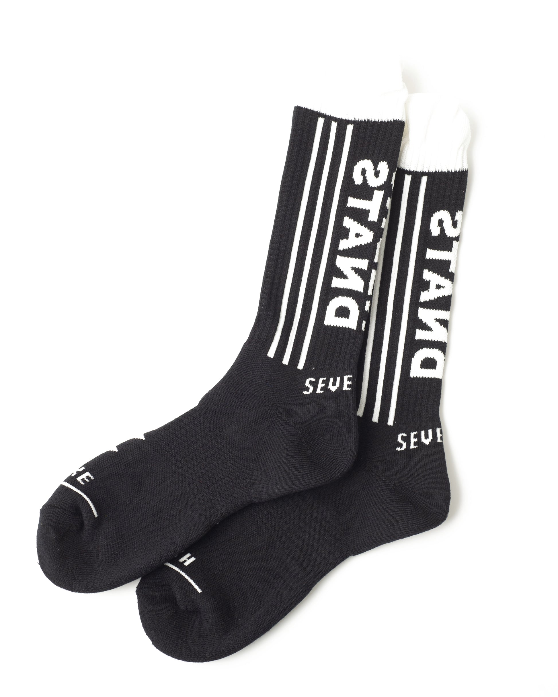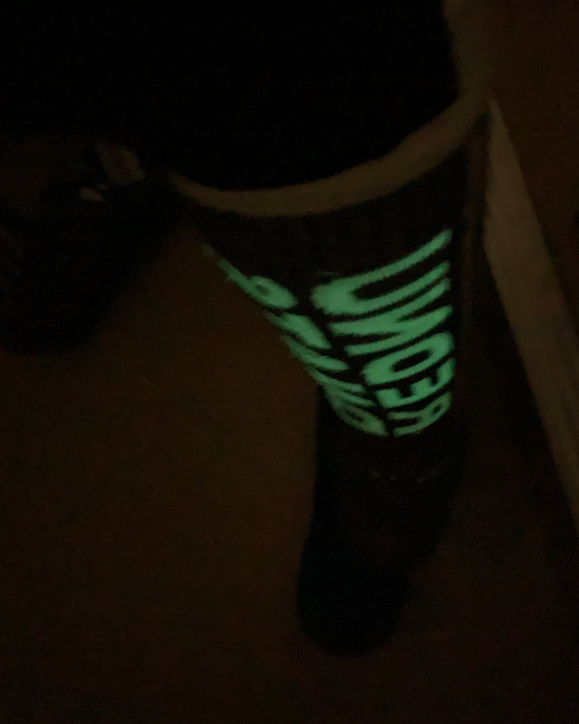 UNDER STAND SOX using materials with antibacterial effect. The phosphorescent yarn is used in the rear part of the UNDERSTAND design for glow in the dark effect. From the ankle to the bottom os finished with back pile.