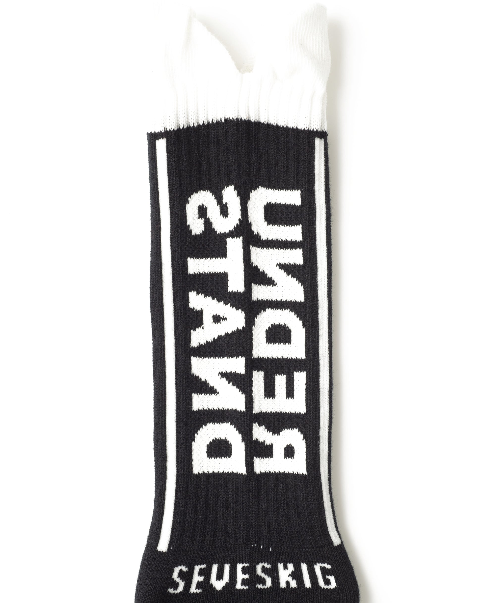 抗菌効果のある素材を使用した、UNDER STAND SOX。脹脛部分のUNDERSTAND部分に蓄光糸を使用しています。くるぶしから下部分は裏パイル仕様になっています。