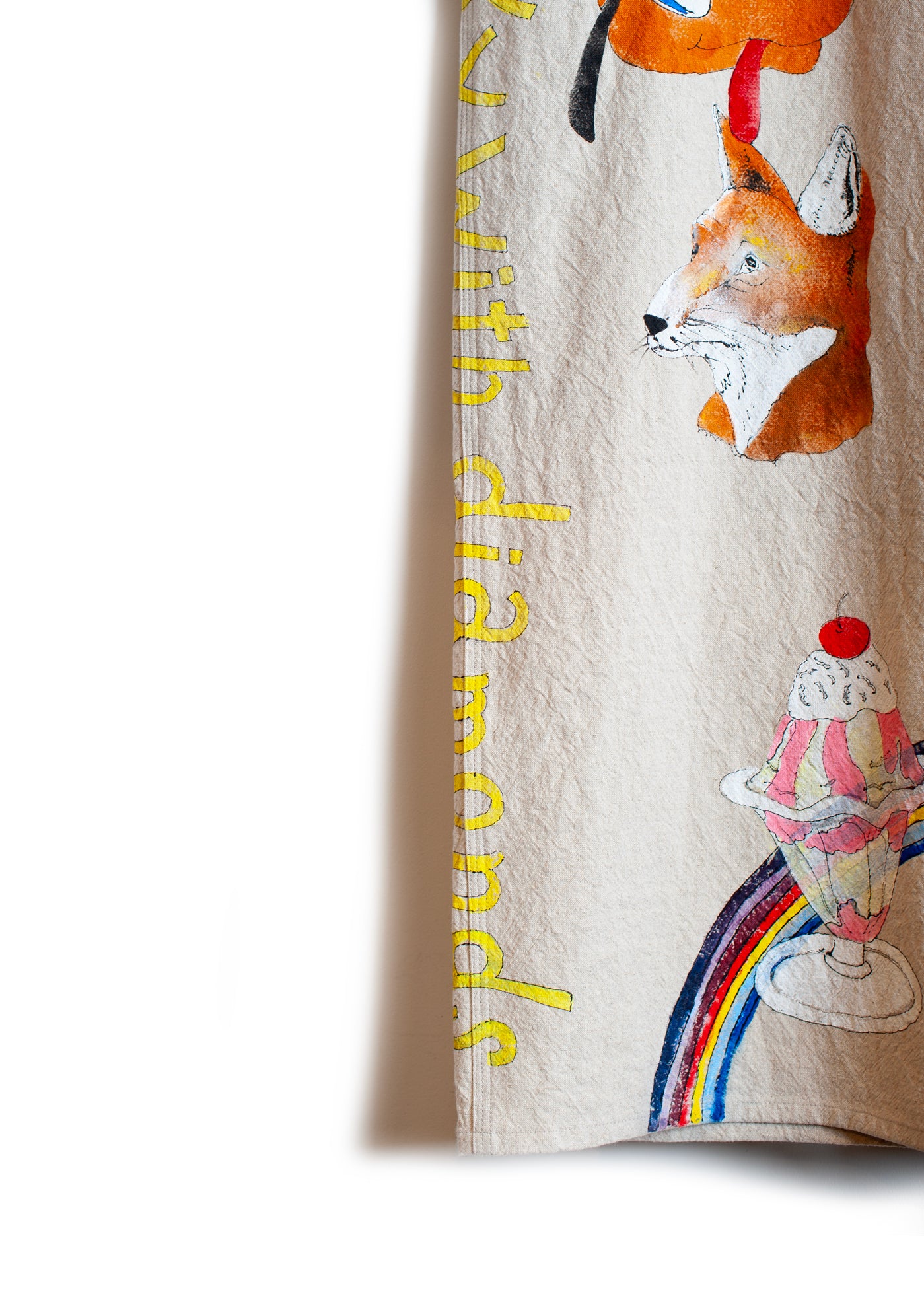 S/S2025 メインテーマでもある 『LUCY IN THE SKY WITH DIAMONDS』The Beatles の楽曲から着想を得た幻想的なビジュアルと鮮やかな色彩が際立ち、1967年のサイケデリックなムードを現代に昇華している。