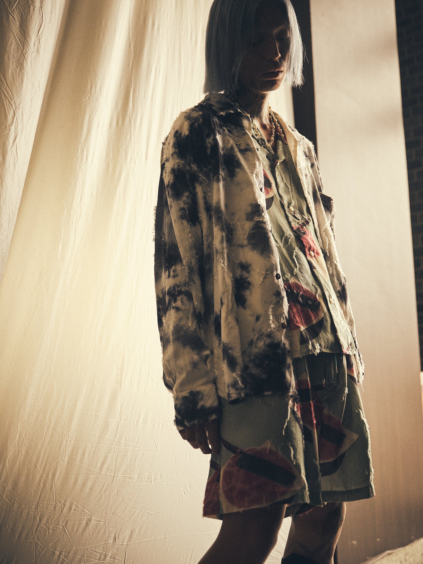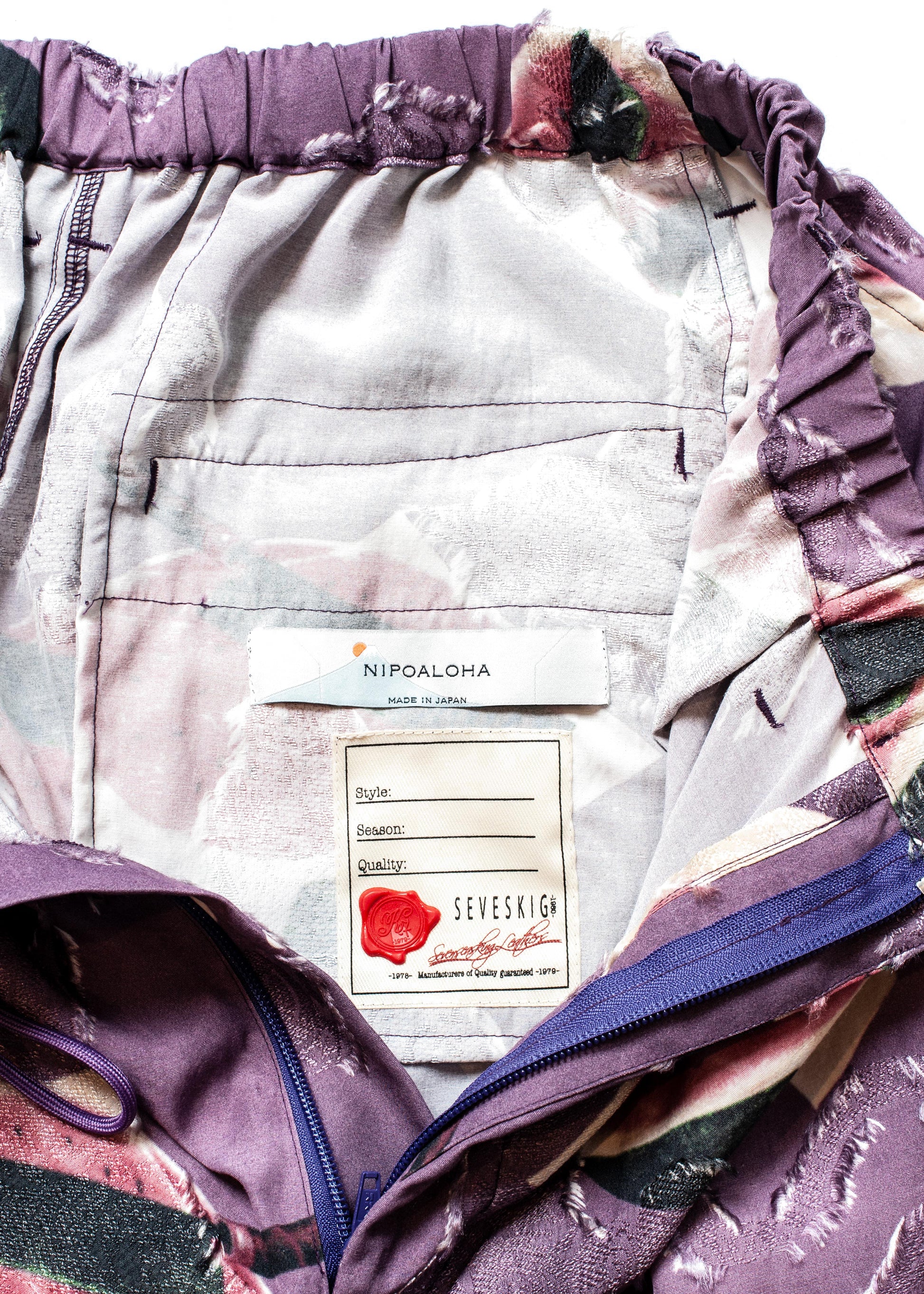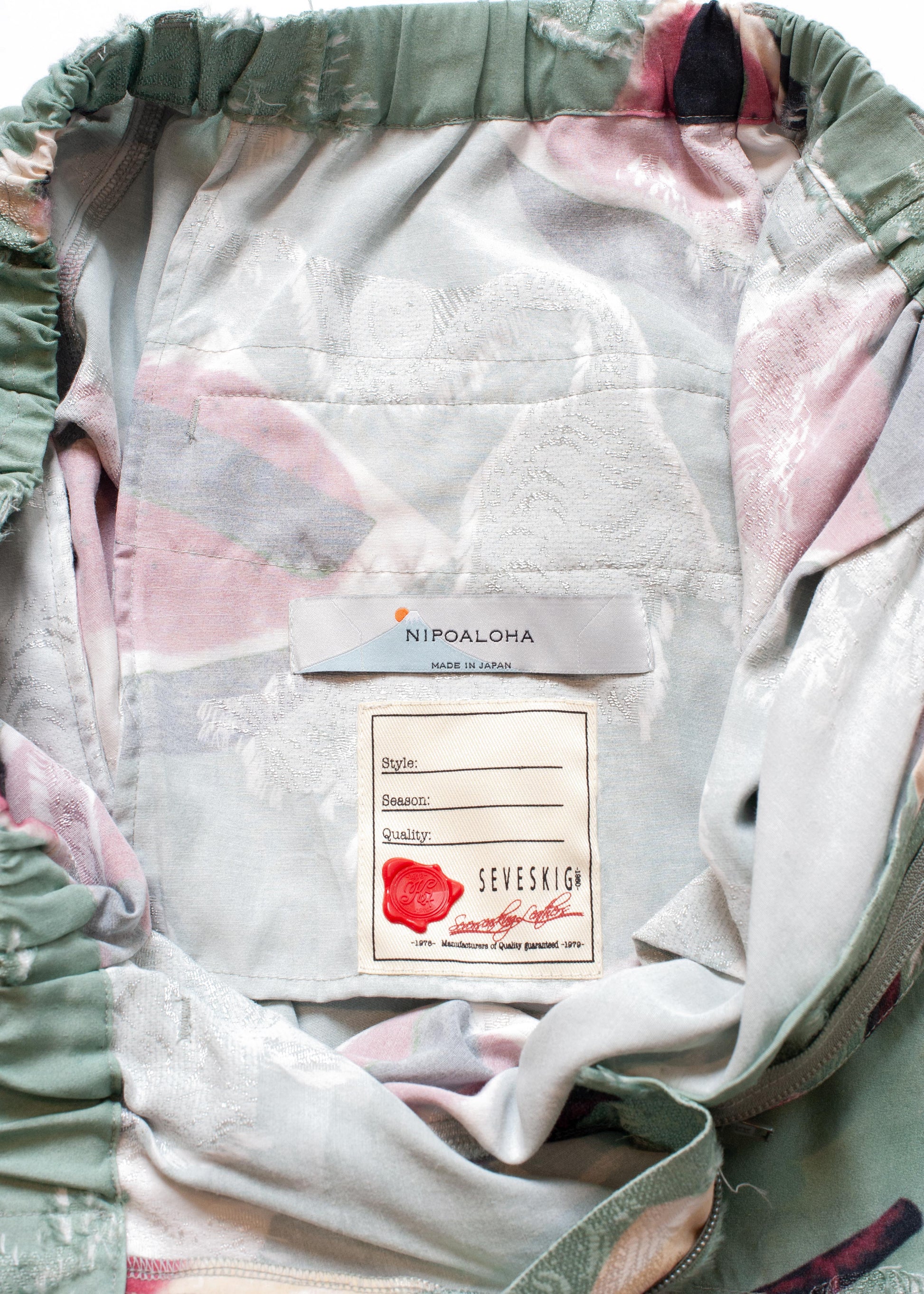 ベースをSEVESKIGが得意とするレーヨンカットジャカードに、NIPOALOHAが得意とする浮世絵をプリントしました。