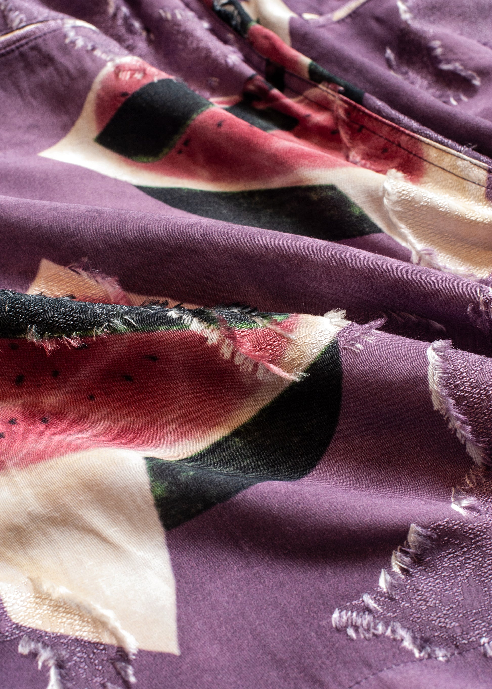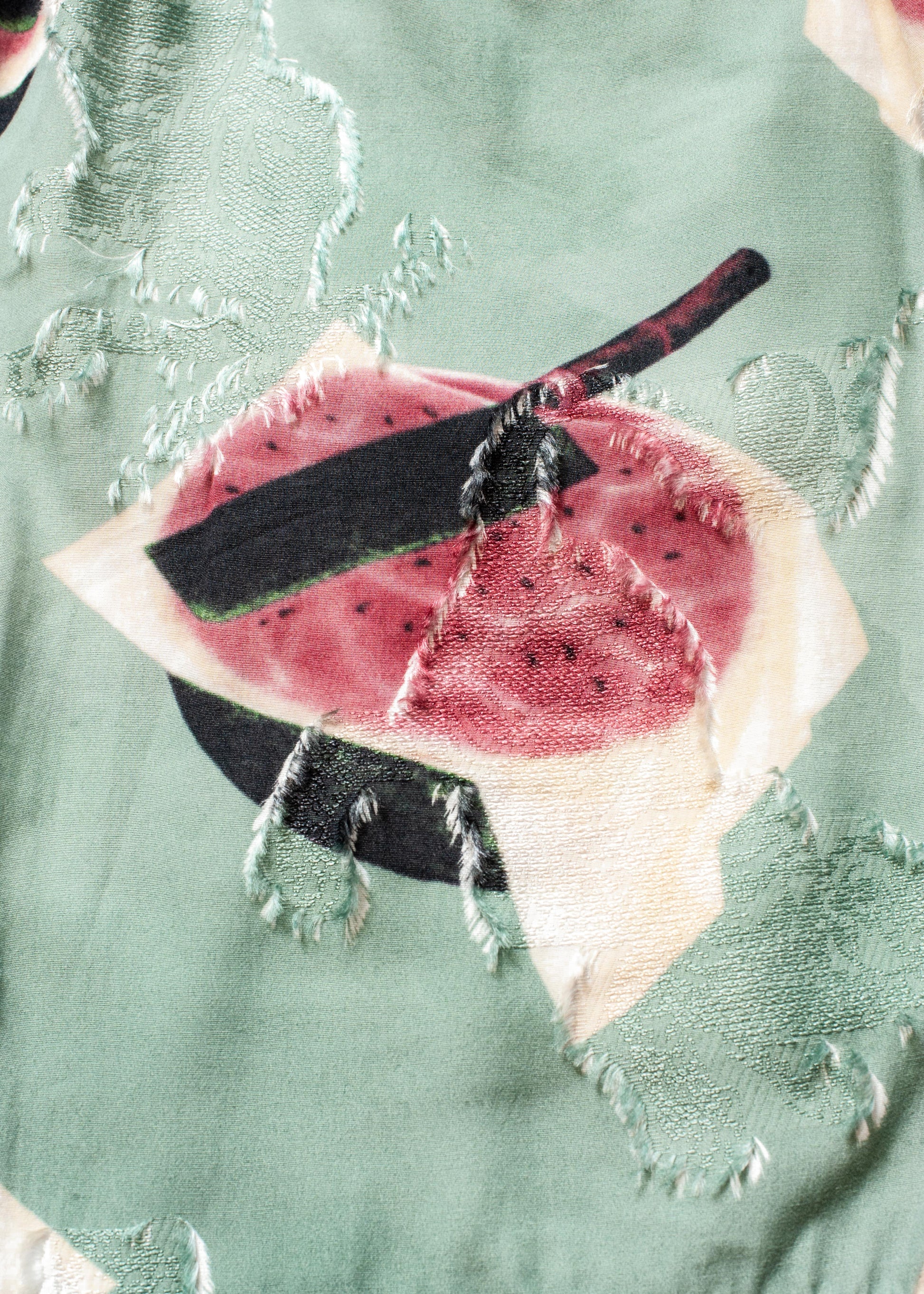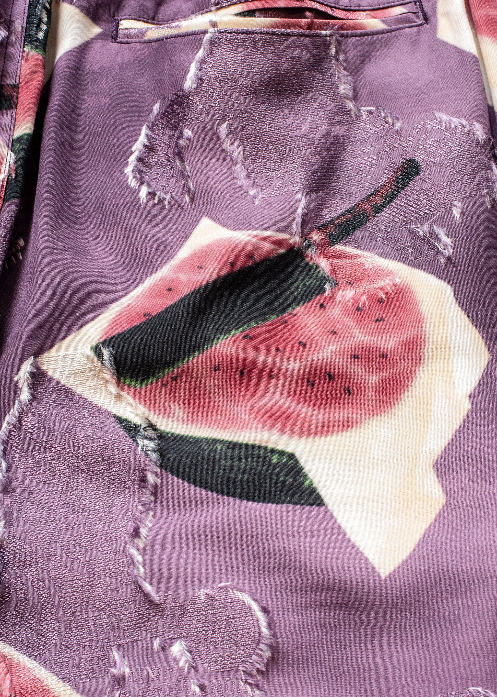 夏らしく葛飾北斎の西瓜図、下地のカットジャカードには鍬形蕙斎の虎。