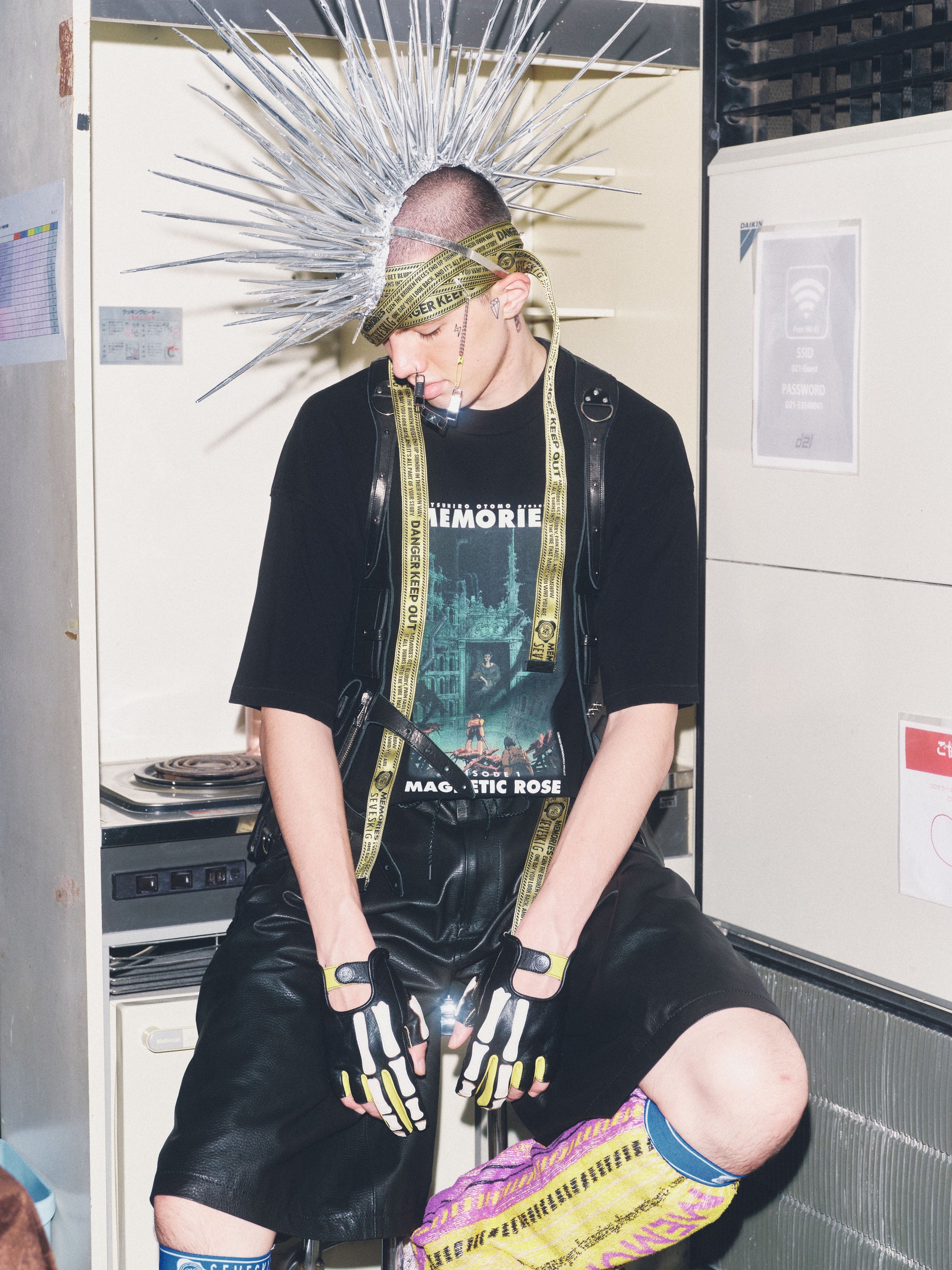 腰まわりには、ウォレットチェーンを模した“刺繍のチェーン”を付属。金属ではなく糸で表現することで、見た目の存在感はそのままに、揺れ方や肌当たりは軽く、スタイリングに自然に馴染みます。