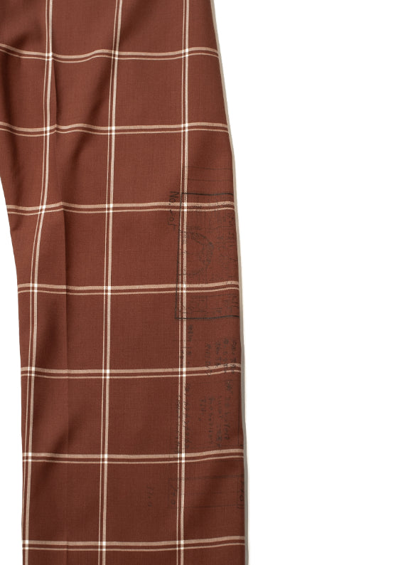 防しわ加工を施したスーパー120を原料とした100%WOOL素材を使用したストレートトラウザース。