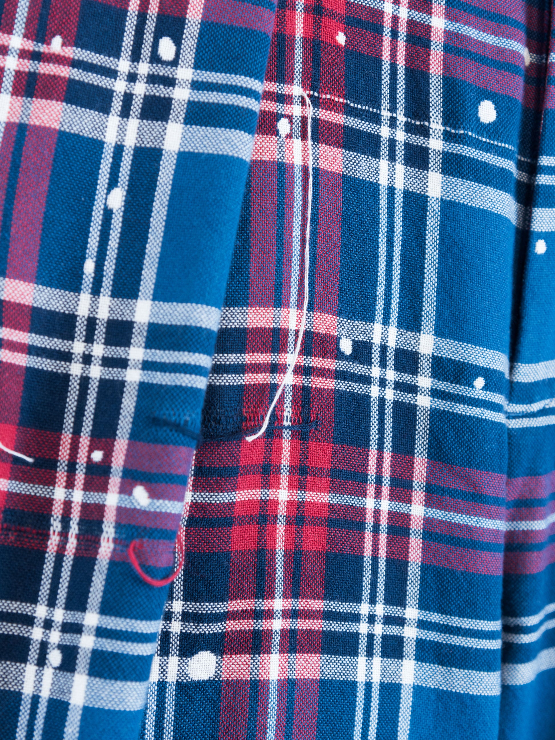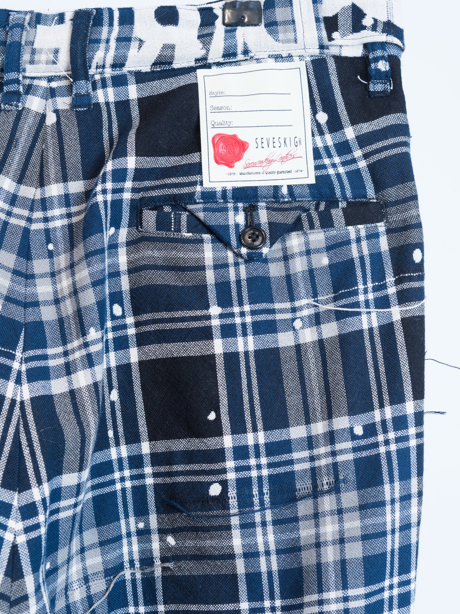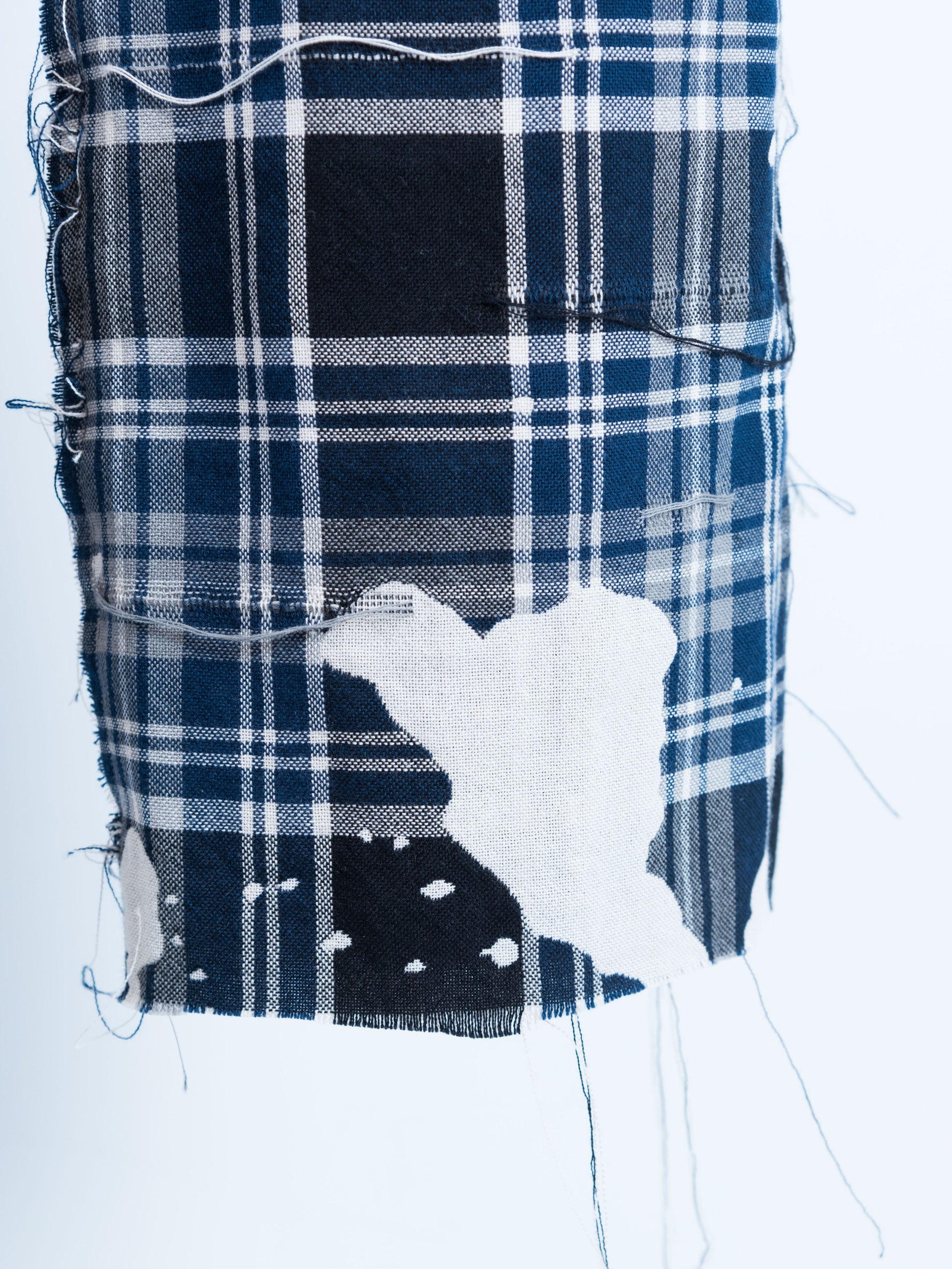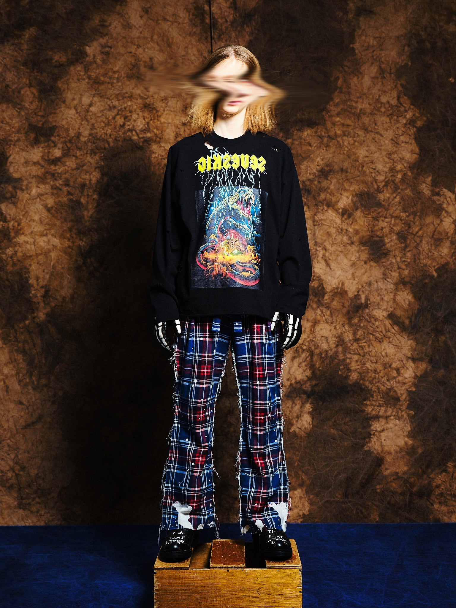 夢の中で物事が溶け出すようなイメージをデザインに取り入れたチェック柄が特徴のスラックスタイプのイージーパンツ。
