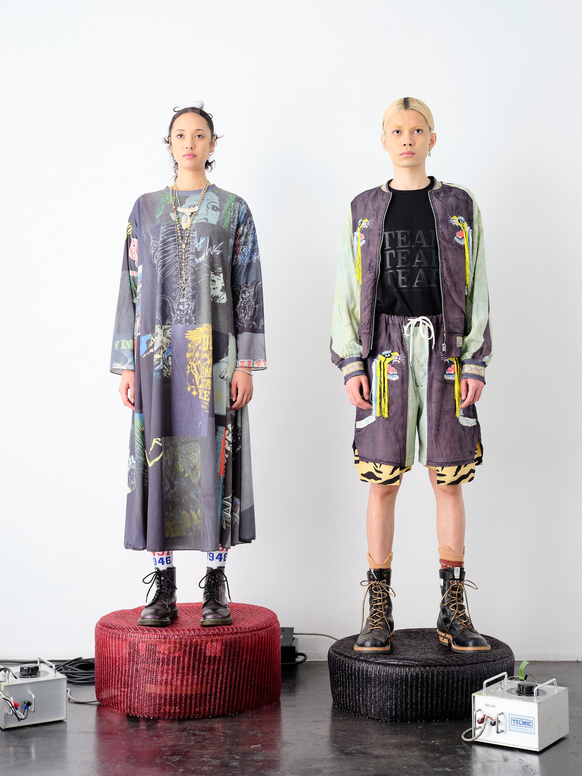 SEVESKIGのデザイナーが所有する1950年代のビンテージスカジャンをスキャンし、全面に転写プリントしています。