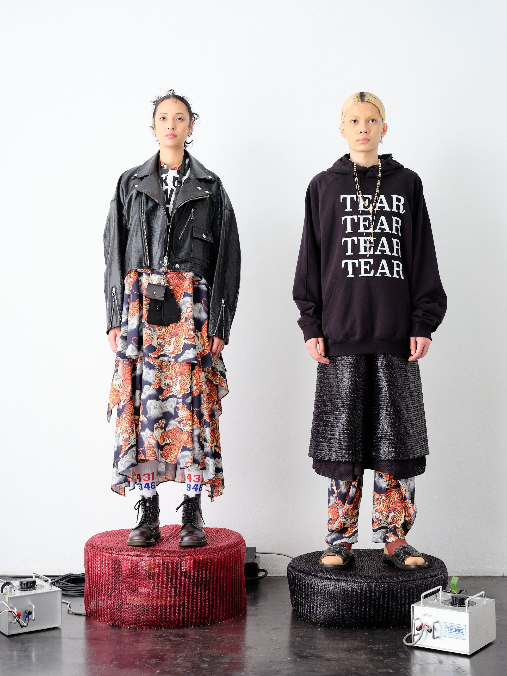 ナイロン扁平糸は架け橋の様な組織になっており、SEVESKIGが発信する作品を通して、様々な人に伝わればという思いを込めた今期のテーマを象徴する素材となっている。