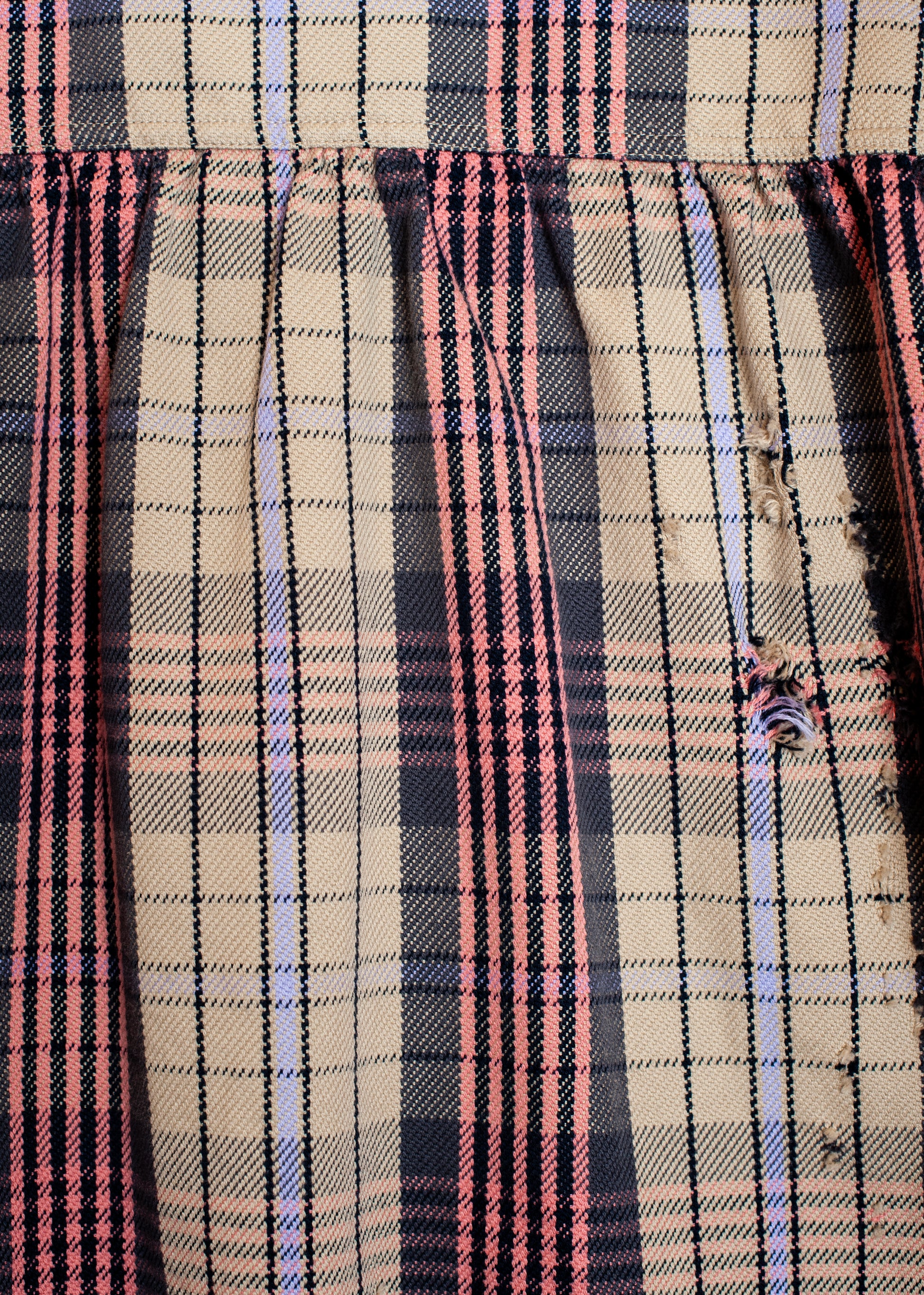 オリジナルで組んだチェック柄のネル生地を使用したシャツ。淡いブルーをベースに、赤やイエローのラインを効かせた配色で、柔らかい印象の中に芯のあるムードを作っています。